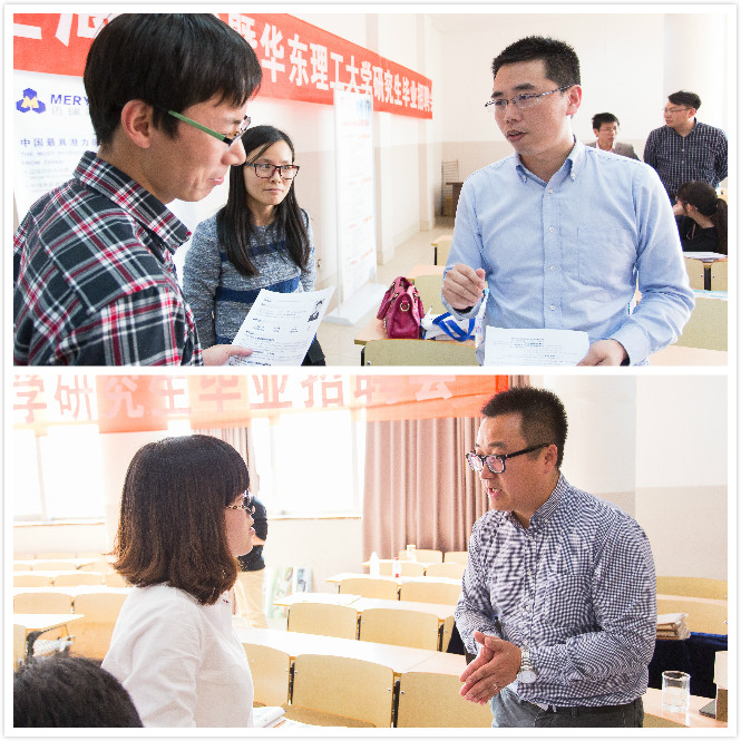 会前,各公司依次播放企业宣传视频。随后,主持人致辞欢迎各公司领导的到来并宣布招聘会正式开始。上海鹰谷信息科技有限公司市场副总监黄东梅女士首先发言,她介绍了公司理念,鹰谷是依托“互联网+”模式,为生物、化工、医药等研发机构提供电子化数据采集服务,帮助用户积累科研大数据,她从公司发展历程、企业服务、典型用户、10亿科研支持计划、合作伙伴和权威认可等六个方面对鹰谷公司概况作了说明。她表示鹰谷虽然年轻,但竞争力强、前景美好,希望同学们积极主动应聘公司的销售经理或产品经理岗位。接着,上海毕得医药科技有限公司研发副总裁张锐豪先生对企业发展情况进行了概述,并以图片的形式展示了公司良好的工作环境和员工丰富多彩的业余活动,殷切希望华理学生踊跃投入到毕得的大家庭中来。随后,上海西陇生化科技有限公司副总经理阿庆德先生从公司的平台服务、营销团队、品牌(及代理品牌)等方面对公司做了简介,同时着重介绍了隶属于公司的毛博士实验室在行业内30年来的成就,其为化学、生化、医药和材料科学等领域的实验室研发及生产提供了集成化解决方案。会上,萨恩化学技术(上海)有限公司和上海迈瑞尔化学技术有限公司相关负责人分别对其企业作了介绍和对所需招聘人才作了说明。最后,上海阿拉丁生化科技股份有限公司营销总监费志锋压轴出场,以诙谐幽默的语言风格介绍了公司情况作并与在场人员亲切互动。他在发言最后强调了公司人力资源管理理念“量才使用、公平竞争、绩效为先”的重要性,并对企业2016年招聘薪酬标准作了说明。各企业宣讲结束后,研究生与企业进行了面对面交流、面试。