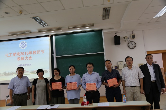 方波副院长宣读表彰“化工之星”、“三大期刊”论文作者的决定,并对近一年内在科学研究、人才计划、教学管理工作中取得突破的教师进行了表彰。刘殿华副院长表彰了2015-2016年研究生“优秀任课教师”、“优秀博士学位论文指导教师”、“优秀硕士学位论文指导教师”;李涛书记宣读表彰了2015-2016学年“优秀班导师”的决定;赵玲院长表彰了“伯乐奖”获得者郭旭虹教授,并希望全院教师共同参与培养并推荐人才。