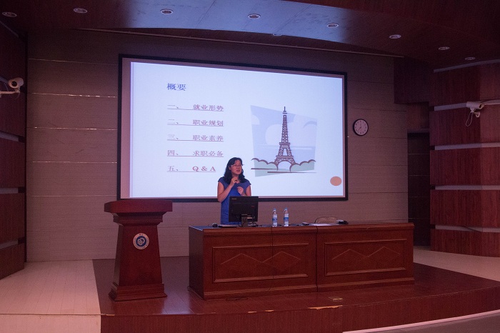 9月9日,颜射合集请了就业指导中心的邹玉梅老师以《从学校到职场——我的第二起跑线》为题,为学生们讲解就业新形势,给了新生职业规划第一课,让学生们能够更好地规划自己的研究生生涯,制定自己的人生目标。