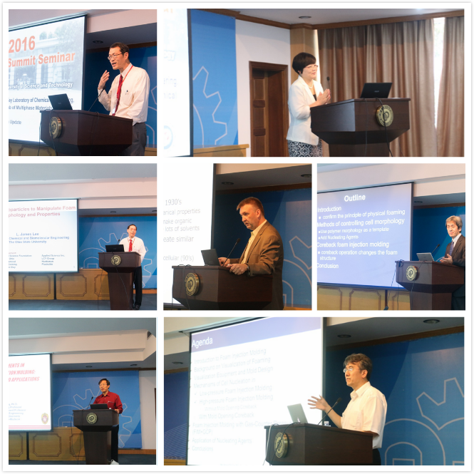 会上,美国俄亥俄州立大学James Lee教授、美国陶氏化学R&D Fellow Stephane Costeux、日本京都大学Masahiro Ohshima教授、美国威斯康辛大学麦迪逊分校Lih-Sheng Turng教授以及加拿大多伦多大学Chul B. Park教授分别作了特邀报告。
