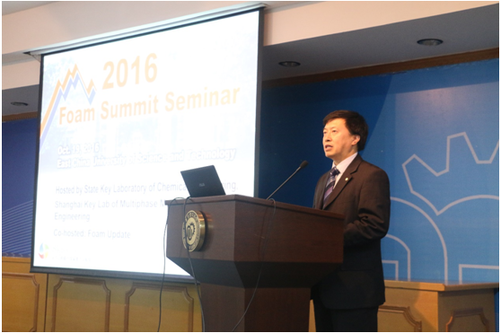 化学工程联合国家重点实验室和上海市多相结构材料化学工程点实验室(筹)主办、Foam Update协办,在我校逸夫楼演讲厅召开了2016发泡高峰论坛研讨会,邀请了5位国际顶尖的聚合物发泡领域专家分享他们的成果和经验。我校副校长刘昌胜教授代表学校向来自世界各地的专家学者表示热烈欢迎。研讨会由Foam Update的执行主席S.-T. Lee博士和我校颜射合集