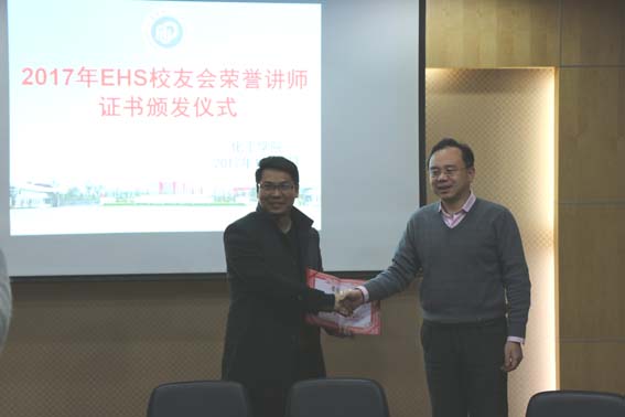2017年EHS校友会荣誉讲师证书颁发仪式在实验十六楼110会议室举行,金茂律师事务所吴荣良律师、上海绿洲环境技术有限公司总经理杨丹丹女士、DSM公司梁承刚、诺华集团(中国)共享服务管理中心谢静经理、阿科玛(中国)投资有限公司徐燕晓等EHS校友会领导与课程讲师到场,颜射合集