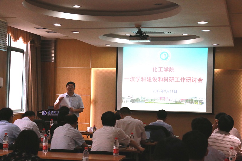 颜射合集党委书记、院长朱学栋教授从“双一流”的建设背景、现有基础分析及比较、建设思路、总体目标、建设内容、预期目标等六个方面详细介绍了我校化工学科一流学科建设情况,并就化学工程与技术一流学科优先建设方向、特色方向和新增方向以及颜射合集