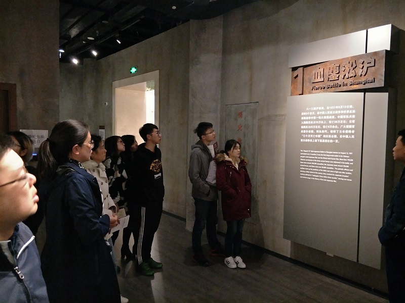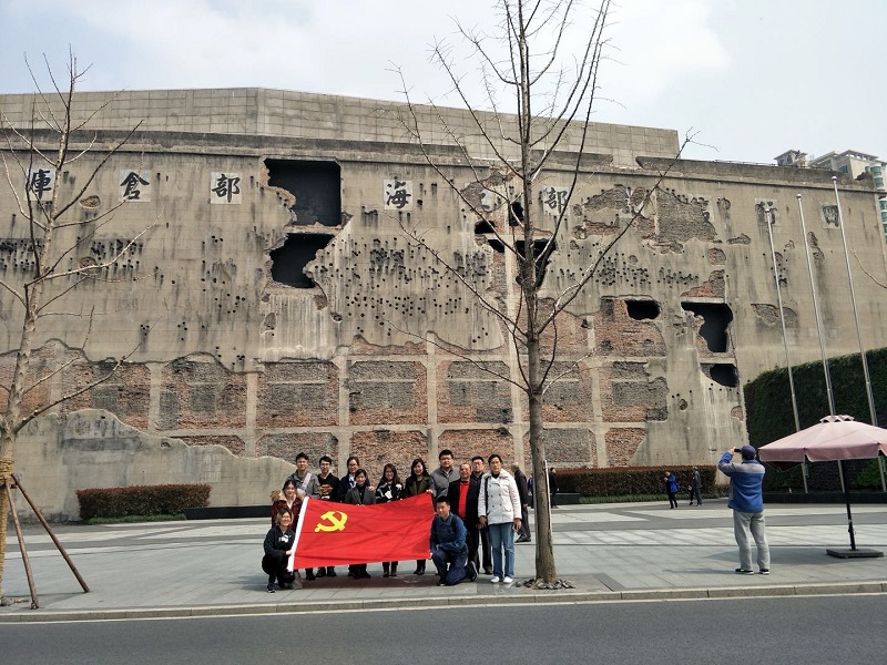 的党员们来到四行仓库抗战纪念馆,党员斯泽浩自愿当起讲解员,在他的讲述中,我们了解了这这段历史:1937年8月13日,淞沪抗战开始,这是中国人民抗日战争中第一场大规模的战役。广大爱国官兵前仆后继,同仇敌忾,粉碎了日本侵略者“三个月灭亡中国”的狂妄企图。淞沪抗战后期,中国军队第88师的“八百壮士”在谢晋元将军的率领下,坚守四行仓库。“八百壮士”抱定为国捐躯的决心,以弹丸之地抗击穷凶极恶的日本侵略军,激战四昼夜,打退敌人十余次疯狂进攻,毙伤日军200余人。这座仓库,因为英雄的坚守,而成为民族的永恒丰碑。这场战斗,因为先辈的热血,而成为民族永远的记忆。