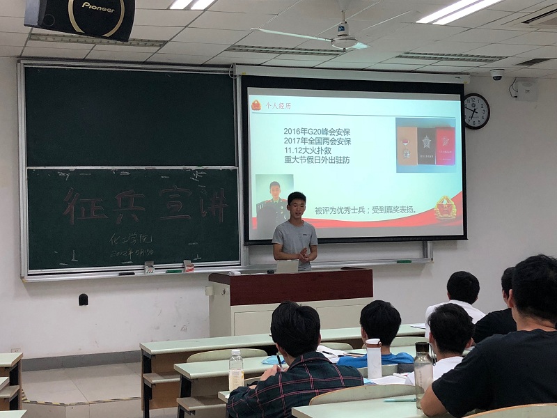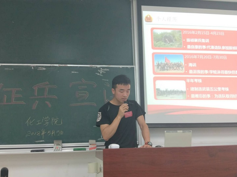 学工委在2018年5月15日晚6:00于教学楼D306教室举办了一场别开生面的征兵动员宣讲会。宣讲会由2016级辅导员强莉主持,宣讲嘉宾为颜射合集
