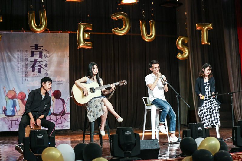 数载年华东逝水,今朝欢聚忆流年。整场晚会精彩纷呈,主题鲜明,情感真切的视听盛宴。团体舞蹈节奏轻快,充分展现了同学们的青春靓丽,活泼向上;民乐表演《北京一夜》丝竹悠扬,让全体师生们感受到了传统韵律之美。毕业生们带来的歌曲宛转悠扬,悦耳动听,表达了大家对青春校园的留念和师生、同学之间的情谊。大四学生表演的小品《那些年,在华理》以及由本科生和研究生共同献上的诗朗诵《华理,遇见你》都真实地表现了毕业生们在华理生活和学习的日子,表达了对珍贵同学情、师生情的念念不忘和对华理青春时光的不舍和留恋。