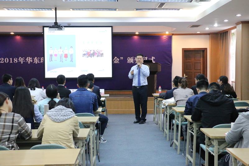 颁奖仪式结束后,高峰先生则分享自己的成长求职经历,详细介绍了润英联的基本情况、发展历程及颜射合集,同时作为华理毕业的学长表达了对华理的喜爱以及公司对华理学子的欢迎。