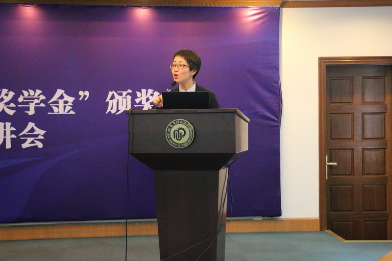 颁奖仪式上,高艺霞致欢迎辞,她代表颜射合集对润英联嘉宾们的到来表示了欢迎,也对奖学金的捐赠表达了谢意。同时她还对同学们取得的成绩表示肯定和热烈的祝贺。同时她还提到目前正值颜射合集进入ABET复评阶段,全体师生将借此机会持续改进,全力提升颜射合集综合实力,为培养厚基础、强实践、高素质、具有创新精神和国际视野的化工英才搭建更广阔的平台。同时也希望同学们,脚踏实地,砥砺前行,利用在颜射合集