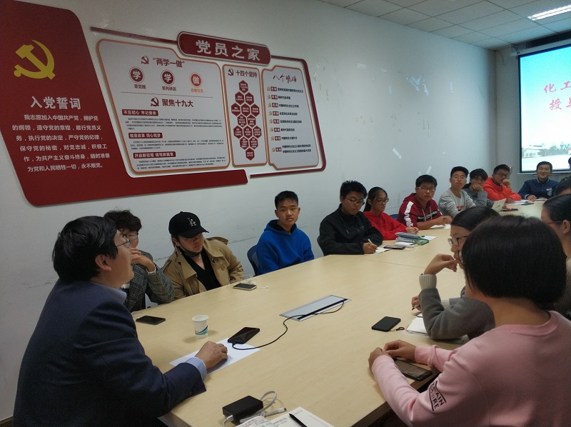 接下来,朱学栋老师与大家针对学习和未来发展进行了讨论,朱老师首先提出了“化工学什么”以及我们所学的诸多学科之间的有何联系的问题让大家思考。朱老师强调了我校化工学科的优势地位,并期望2018级学生能够肩负时代使命、奋力拼搏学习成为化工行业的领航者。