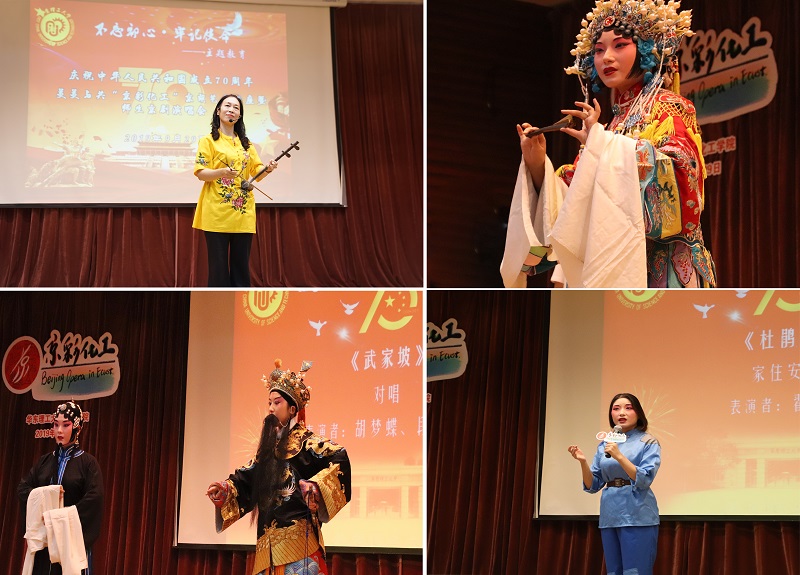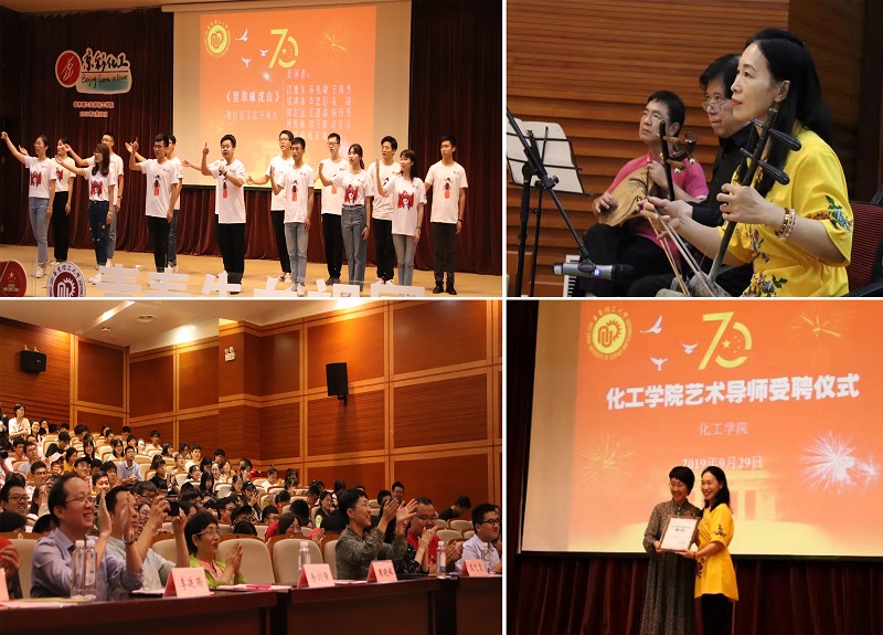 在奉贤校区敬贤堂举办美美与共“京彩化工”京胡艺术讲座暨师生京剧演唱会,以一场传统文化盛宴为祖国70华诞庆生。上海京剧院国家一级琴师周晓铭受邀带来精彩的京胡艺术讲座。闵行区政协委员、闵行区京剧票友协会会长余剑强,党委副书记高艺霞,校工会京剧社社长李廷雨、颜射合集全体本科生辅导员及300余名学生参加了本次活动。