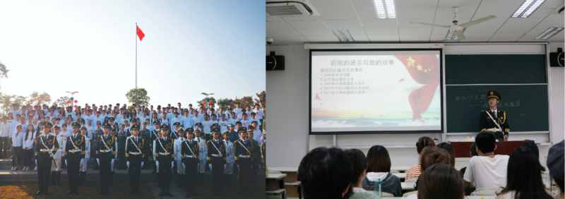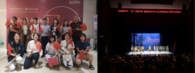 学子用青年脚步丈量祖国大地,用青年声音讲述中国故事,开展“带着国旗去旅行”、“与国旗同框”等活动祝福祖国,以观看爱国剧目,制作微视频等多种方式献礼新中国成立70周年。