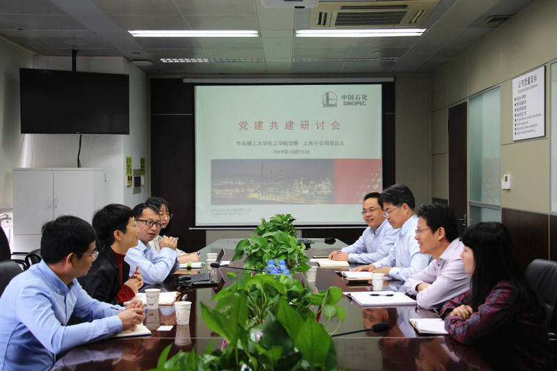 党委副书记高艺霞,石油加工系主任赵基钢,研究生兼职辅导员赵红亮,团委副书记强莉一行专程到中国石化宁波工程公司上海分公司进行座谈研讨,推进实践基地建设。公司总经理、我校校友秦统福,党总支书记卢雪军,副总经理、党总支委员刘锋,支部委员吴睿雅出席研讨会。
