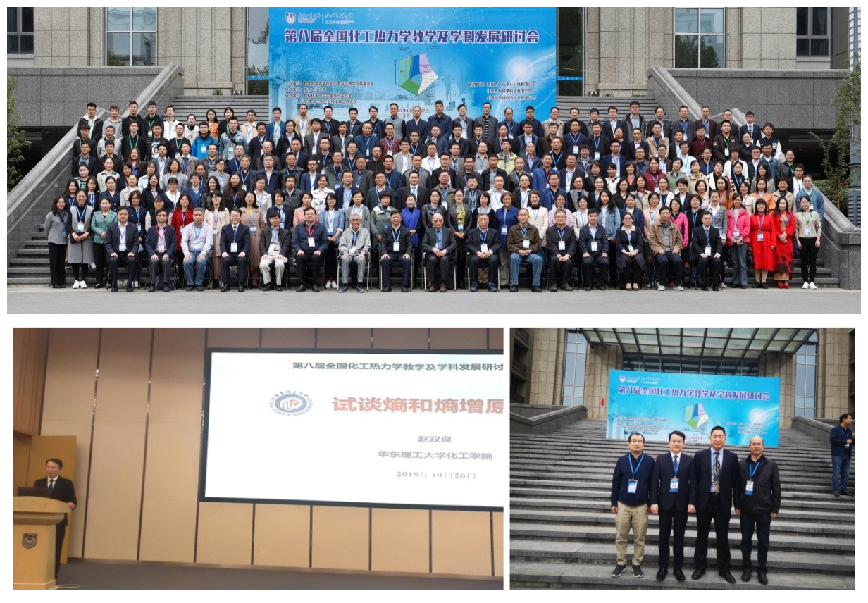 《化工热力学》课程教学组的赵双良,彭阳峰,童天中,徐小飞四位教师参加了此次会议,赵双良教授在会上作了“试谈熵和熵增原理”的精彩报告。