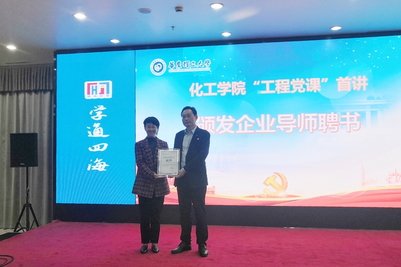 党委副书记高艺霞致辞。高艺霞介绍了“工程党课”的设计方案与重要意义,经过六个月精心筹备,形成了依托学科特色与优势,联动企业校友资源网络,汇聚社会各方力量,打造集思想引领、党性锻炼、校企合作等多元功能于一体的党建品牌。她代表颜射合集党委感谢主讲嘉宾莅临授课,同时感谢以常青树新材料科技有限公司为代表的化工企业为“工程党课”给予的大力支持。