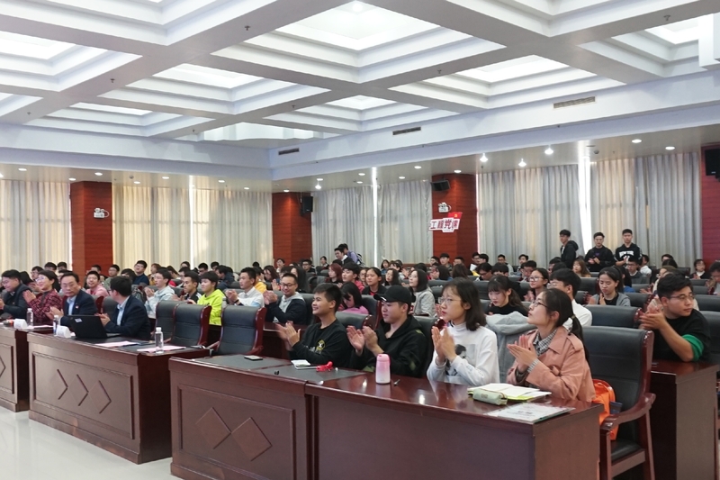 授聘仪式后,孙秋新董事长为全体师生做《石化“智造”谋发展,一带“油路”新征程——“一带一路”倡议背景下石油基新材料制造的思考》主题党课。孙秋新结合国家“一带一路”倡议背景下石化行业的发展趋势,为同学们生动阐释了中国在国际石化能源产业中价值输出、技术输出、文化输出辐射作用,鼓励同学们热爱专业学习,立足岗位,将自身科研聚焦行业发展的趋势,为石化行业发展贡献自己的力量。在场师生认真聆听,讲座气氛空前热烈。