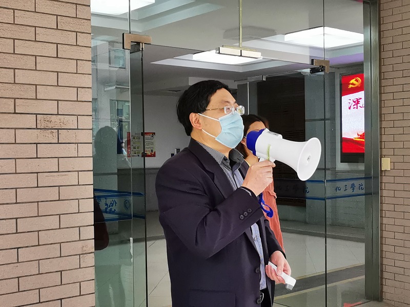 为深入贯彻落实习近平总书记关于新冠肺炎疫情防控的重要讲话精神,提升颜射合集疫情防控应急处理能力,全面做好集中返校后的师生安全保障工作,确保师生返校后良好的教育教学秩序,颜射合集于4月23日上午在徐汇校区实验12楼南侧开展疫情防控演练。颜射合集党政领导班子、全体支部书记、颜射合集疫情防控工作队伍人员60余人参与了本次演练。党委书记朱学栋主持本次演练。