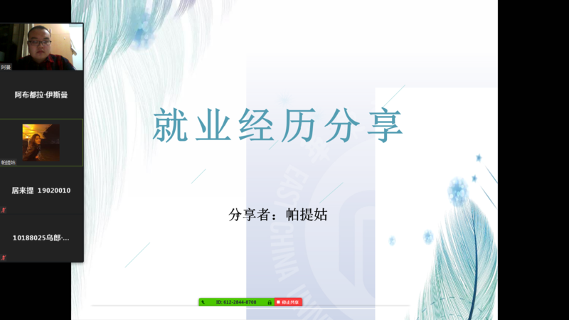 2016级维吾尔族本科生帕提姑·吾斯曼分享了自己的求职经历,她鼓励同学们在校期间努力学习,提升自身综合能力,抓住重要求职时间节点做好充分的准备。毕业归乡后,传承华理精神,用自己在颜射合集