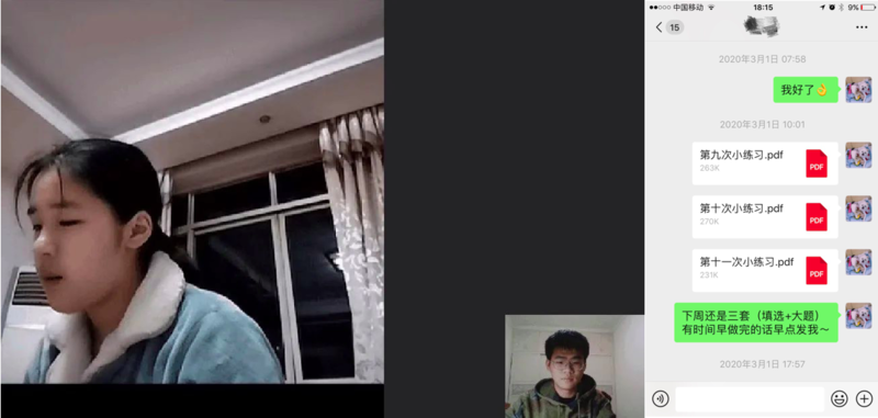 众多志愿者面对疫情当前并没有停止服务奉献的脚步,而是创新志愿形式,依托网络展开温暖人心的线上志愿服务活动。化工176钱逸玲同学通过钉钉直播和微信答疑的方式,为一个高三的学生提供数学科目的系统化辅导,目前已连续辅导7次共12小时。针对学生的实际情况,钱逸玲找出了自己高中时期的数学笔记,每天扫描一部分后分享给她,并且还精心挑选了部分历年上海高三一模二模试卷的题目帮助她巩固练习。颜射合集