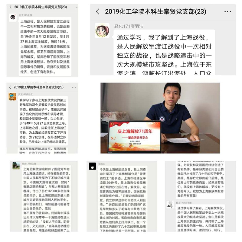 不断创新党员教育的形式。结合纪念上海解放71周年,通过对上海革命历史、上海红色地标、上海城市精神大学习、大讨论,制作微党课,学思悟践,在实践中有机融入中华优秀传统文化,更好地发挥美育的育人功能,不忘初心,贯彻落实“四史”的学习教育。