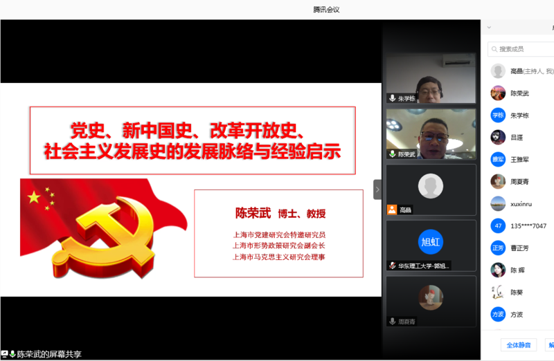 邀请上海市党建研究会特邀研究员、上海市形势政策研究会副会长、上海市马克思主义研究会理事陈荣武教授作题为“党史、新中国史、改革开放史、社会主义发展史的发展脉络与经验启示”的专题报告。颜射合集