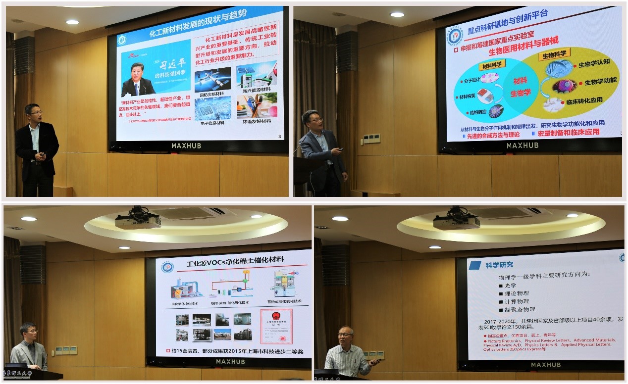 青年教师代表龙东辉教授、奚桢浩教授结合自身研究领域,分别作了《军工领域新材料发展之浅见》和《高性能聚合物新材料的发展趋势》的学术报告。报告结束后,与会老师就化工新材料领域研究方向和远景规划进行了深入探讨。