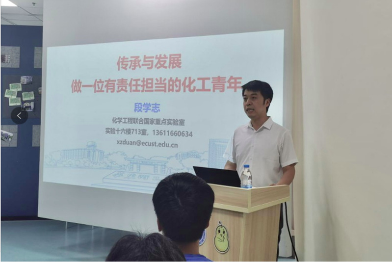 “青年教师周周讲”系列科研沙龙之“传承与发展——做有责任担当的化工青年”主题讲座于奉贤校区小花梨新媒体工作室举行。本次活动特别邀请到段学志教授主讲。讲座开展线下互动研讨,并同步进行“化工青年集结地”B站直播,直播人气量近600人次。