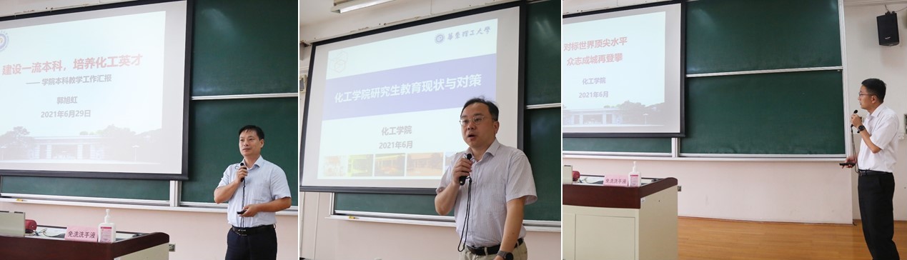 颜射合集各分管负责人向全体教师汇报了各条块的工作情况。副院长郭旭虹、刘殿华从招生、课程建设、教材建设、学生培养、学科竞赛、教育教学成果奖、实践教学基地建设、国际化交流合作等方面详细介绍了“十三五”期间本科与研究生教育教学工作取得的进展,副院长凌昊则重点介绍了颜射合集近几年的科学研究和安全工作情况。在总结成效的同时,三位负责人也分析了当前工作中存在的“短板”,并针对性地提出了“十四五”努力方向。