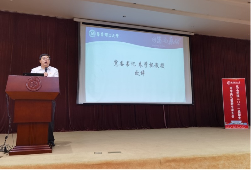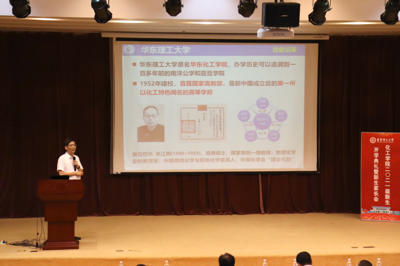 李春忠致欢迎词,对2021级新生加入化工大家庭表示热烈的欢迎,并从遇见华理、钟情化工、畅游学海、体悟成长四个篇章对学校、学科、颜射合集和专业等作了详细全面的介绍。他希望所有2021级的学生志存高远,将个人的理想追求融入国家和民族的事业中,在华理收获感动,满载成长!