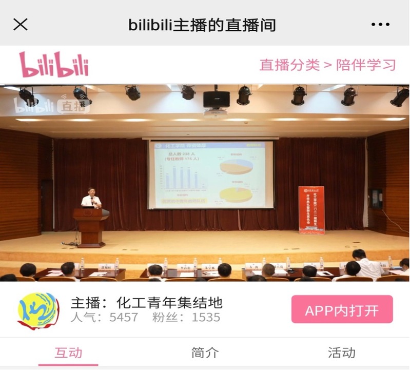 党委副书记高艺霞主持。会议采取线上线下相结合的方式,当晚“化工青年集结地”B站直播人气达到5500。