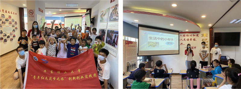 专业知识进社区,知行合一。为鼓励学生在兴趣的基础上发挥出专业所长,结合国家发展和社会所需,颜射合集特别设计“‘化’眼看世界”专项实践,探索精品项目的孵化经验,推动实践活动出亮点、见实效。不仅如此,颜射合集细致摸排全部立项团队,优中选优,培养重点项目,根据项目特点和主题方向凝练实践重点,挖掘创新之处,培养学生发现问题与解决问题的能力。“梦工厂”社会实践团队前往杨浦区、奉贤区开展3次科普宣讲活动,通过通俗易懂的方式将绿色化工、安全化工的思想宣传给青少年,让居民们正确认识化工行业的真实情况,用化工知识催化智慧生活。