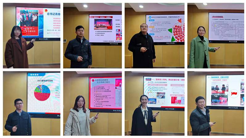 高艺霞表达了颜射合集党委对学生工作及辅导员队伍建设的高度重视。随后,8位专职辅导员从德、智、体、美、劳“五育”融合角度,分享优秀工作经验方法。李春忠指出,在建党百年的重要节点,思政团队开展了以“礼赞新时代•百年再启航”为主题的富有特色的系列活动,为学生成长成才搭建了一系列丰富平台。同时,他寄语思政团队:新年要有新作为,希望思政团队要结合学生思想实际、专业特点,开展更具针对性、实效性的工作,为颜射合集人才培养发挥更大的力量。朱学栋作总结讲话,他认为交流会很好的展现了辅导员昂扬向上、积极进取的精神风貌,体现了颜射合集思政工作扎实推进、稳步向前的整体态势。