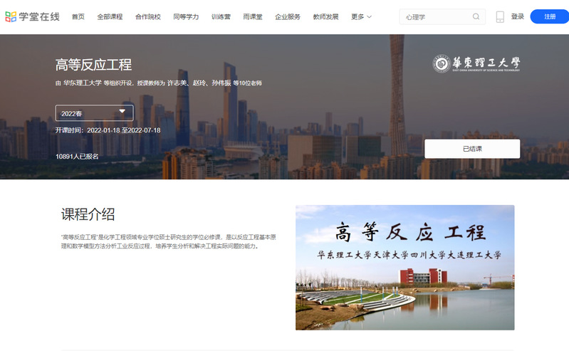 图片说明:“高等反应工程”学堂在线平台学习页面