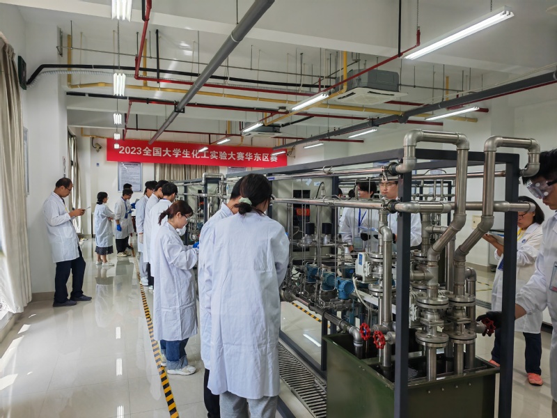 奉贤校区顺利举行。大赛分理论、仿真、实验三部分,其中实验部分的竞赛在我校奉贤校区进行。2023年初,全国大学生化工实验大赛被教育部认定为B类竞赛,意味着比赛经过几年的发展,其效果和影响力得到了教育界和社会的认可。因此今年的华东赛参赛人数创下新高,吸引了来自上海、江苏、浙江、安徽、江西等华东地区四省一市的62所高校的127支队伍500余名师生参赛。我校参赛队获得了总成绩第一名和第三名的好成绩,取得华东赛区两个特等奖及晋级全国总决赛的资格。我校还由于出色的竞赛组织,获得优秀组织奖。
