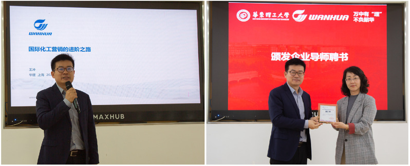 王冲从“强烈的好奇心”和“必胜的信念”展开,分享了在万华化学国际事业部工作的趣事,同时指出,一个好的销售体系要以高效的管理方式为基础,以客户为中心,以创新为强大的动力源头,与市场需求对齐颗粒度,在行业发展中有的放矢,实现共赢。讲座中王冲多次谈到在母校求学的时光,表达出对华理深厚的情感。